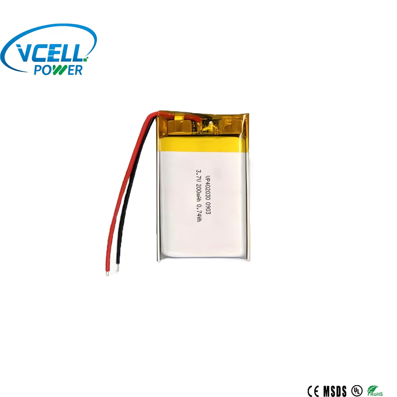 1.3.7V 200mAh 402030 충전식 리튬 폴리머 배터리로 에너지 밀도가 높고 내구성이 뛰어납니다.